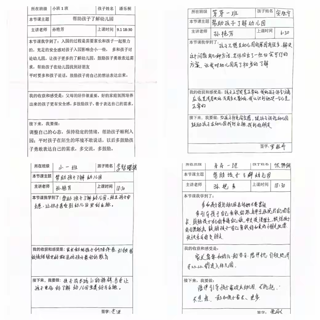 观看课程视频后,家长收获满满,积极总结育儿知识,记录育儿心得。